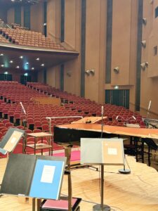 前半のベートーヴェン ピアノ協奏曲第一番では、ピアノを縦に配置する珍しい編成が採用され、オーケストラの響きの中に自然に溶け込む魅力的なサウンドが印象的でした。
